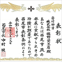 名古屋市南区消防表彰式にて2014年1月17日、弊社の地域防災活動への協力と参加活動への取り組みについて表彰していただきました。
